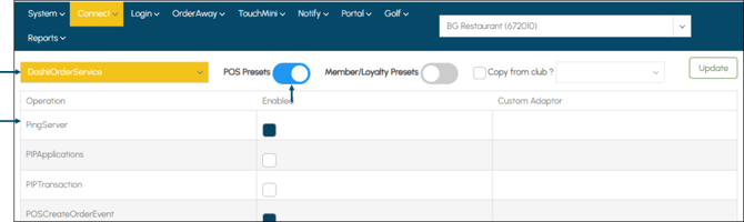 - Ensure the POS Presets and Ping Server options are selected.