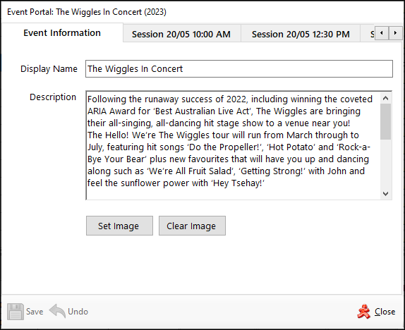 - Set/Clear Image - Select to select/remove an Image. The image selected will be displayed in the Event Portal for the Event.