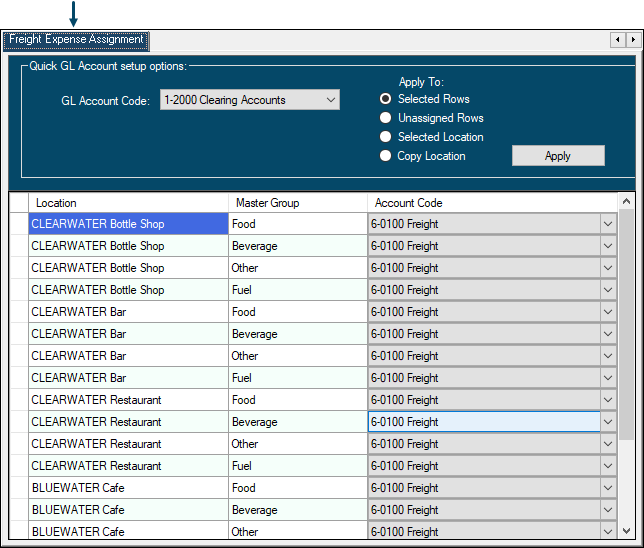 Used to assign/map Freight Expense Accounts to SwiftPOS Location/Master Group combinations.