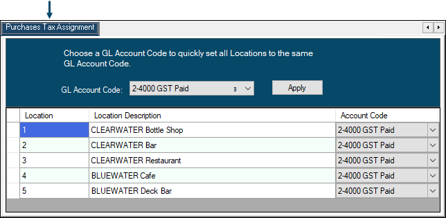 Used to assign/map Purchase Tax Accounts to SwiftPOS Location/Master Group combinations.