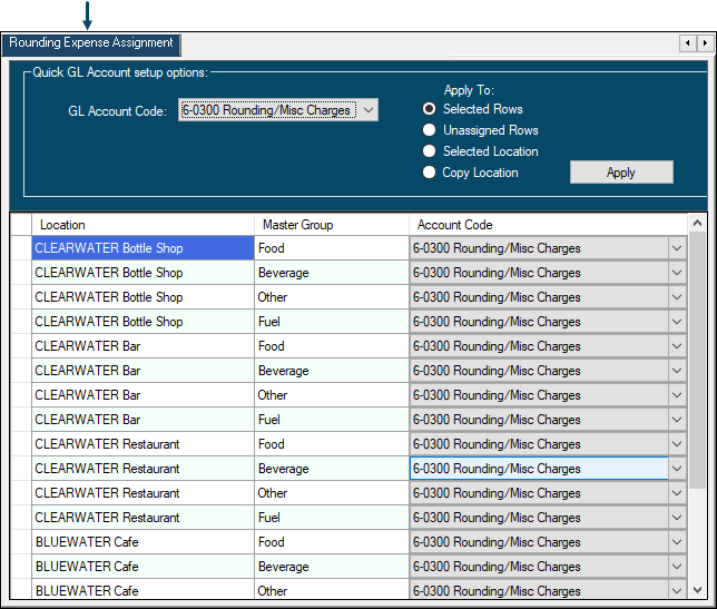 Used to assign/map Rounding Expense Accounts to SwiftPOS Location/Master Group combinations.