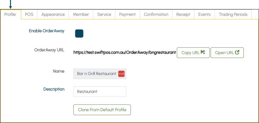 The concept of cloning is essentially to facilitate the configuring of multiple Orderaway Profiles in the same Location with the same configuration. Making it easier for Venues to configure multiple Profiles.