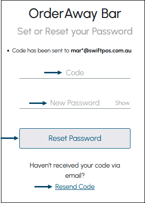 - And the Member has BOTH an Email address and a Mobile number registered with the Venue, then a verification code will be sent to the Member's Mobile number. This can then be entered in the prompt.