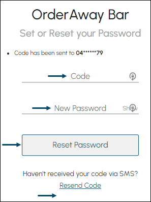 - And the Member does NOT have an Email address registered with the Venue, then a verification code will be sent to the Member's Mobile number. This code can then be entered in the prompt.