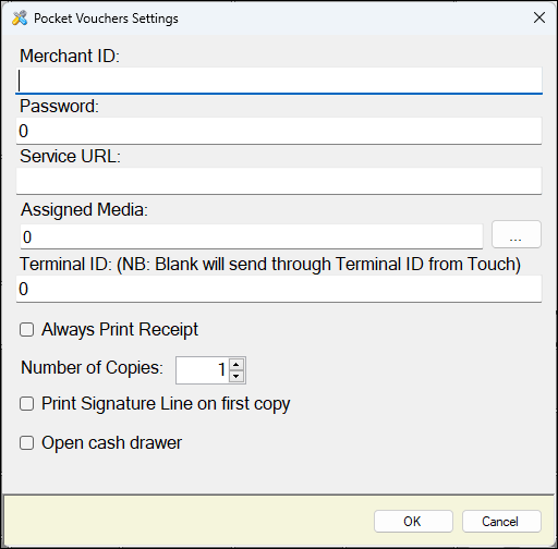 - Merchant ID - Displays/Enter the ID as provided by Pocket Vouchers.