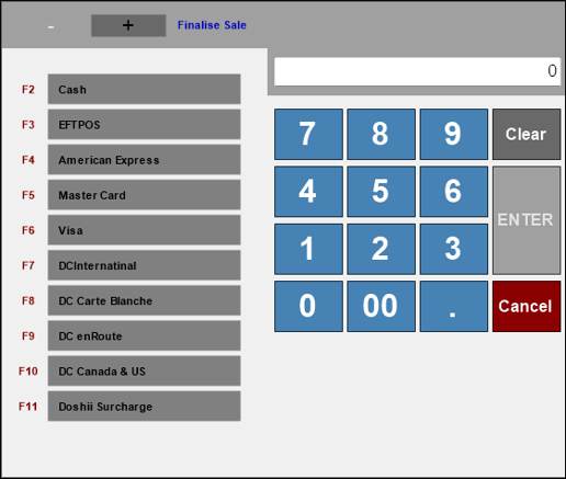 - Add Payment - Select to open the Finalise Sale screen to process a payment for the amount currently owing on the TAB. Once the payment has been processed, only then can more items be added to the TAB.