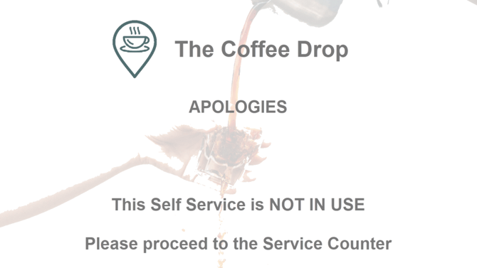 The Self Service Out Of Service (Locked) Layout is presented when the Self Service is locked. This is usually achieved by selecting the Lock Terminal option in the Basic Tools menu or, if configured, the Lock Self Service POS Key in the Admin Layout. This Layout is automatically generated when the Self Service option from the Style drop down list is selected. Refer HERE for more information.