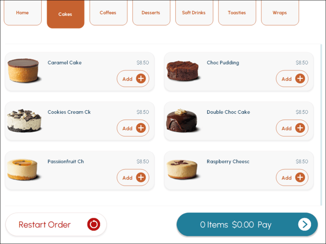 These can then be quickly configured as required for the Venue. The Self Service Kiosk style Keyboard has been designed to use existing Keyboard and Touch functionality, to build the Menus (Layouts) and to quickly add existing Products. Once configured, the Self Service Kiosk option will apply these to a templated visual display in Touch. This means there is a minimum effort required to configure Layouts, and design visuals for it.
