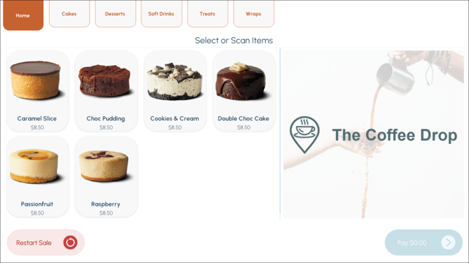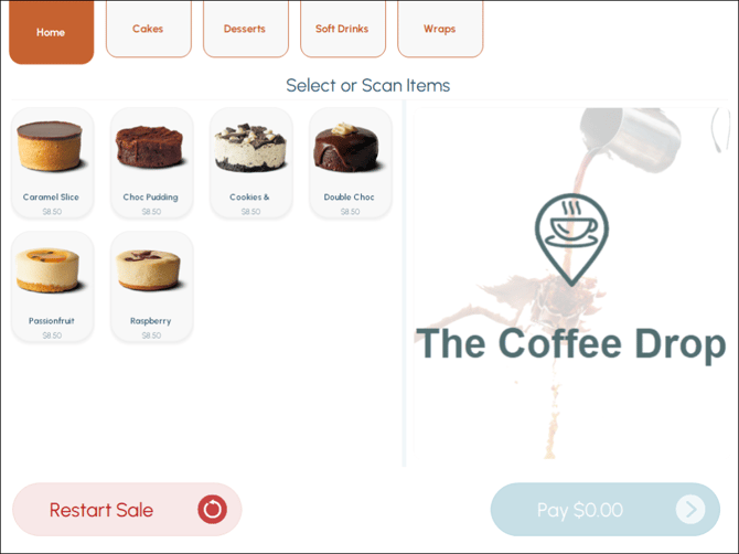 - Menu (including the Master Menu) type layout - Optional. An image to be displayed in the sales grid prior to Items being ordered. Images (if to be added to these type Layouts) will depend on the screen size to be used for the POS Self Service. For example: