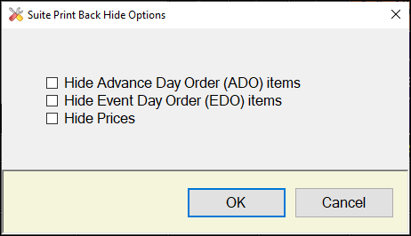 • Hide Event Day Order (EDO) Items - Select to ensure all EDOs are not printed.