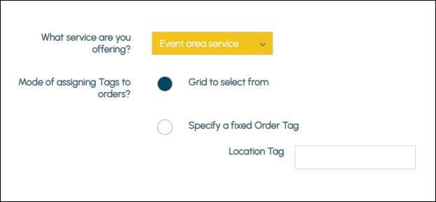 - Specify a fixed Order Tag - To be made obsolete. Not supported with the Event area service option.