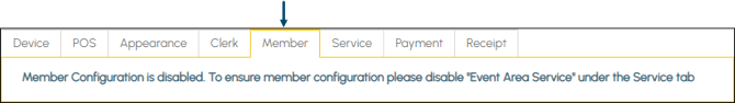 To ensure configuration of the Member’s tab is enabled, ensure the Event area service option is NOT selected in the Service tab.