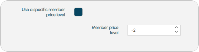 - Use a specific member Price level - Select to ensure the Member Price Level set will be used for all signed in Members. Once selected the following options will be available: