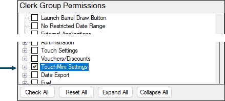 Ensure that the Touchmini Settings option has been selected against the appropriate Clerk Security Groups.