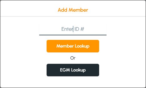 - EGM Lookup - Select to enable and allow for the entry of the ID of an EGM (Electronic Gaming Machine). Once enabled and the Guest icon (in the top right-hand corner) is selected, the Clerk/Staff Member will be presented with the following prompt:
