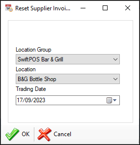 - Reset - Select a Trading Date to ensure that General Journal related transactions for that date are flagged as NOT Exported, so that they can be exported again. Select to display the following prompt: